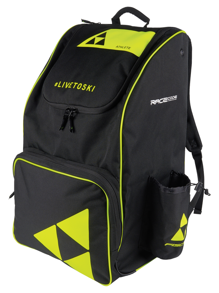 You’ll have 70 liters of space for everything you need on race day or during training. A waterproof bottom and integrated rain cover let you confidently place the backpack on snow—next to the course or on the hill. Gloves, hat, and sunglasses have a dedicated front compartment, and a separate pocket keeps your water bottle within easy reach. Side pockets make it easy to pack and separate damp gear.