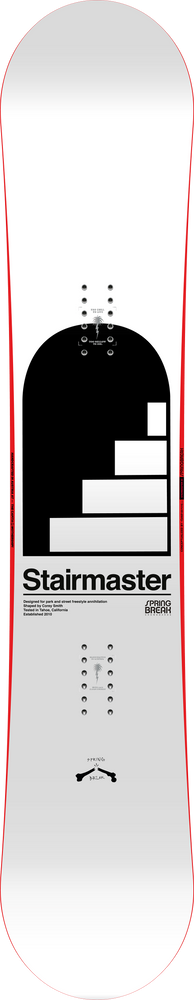 The Stairmaster is a snowboard for Spring Break fans looking for a progressive board for the park and the resort.