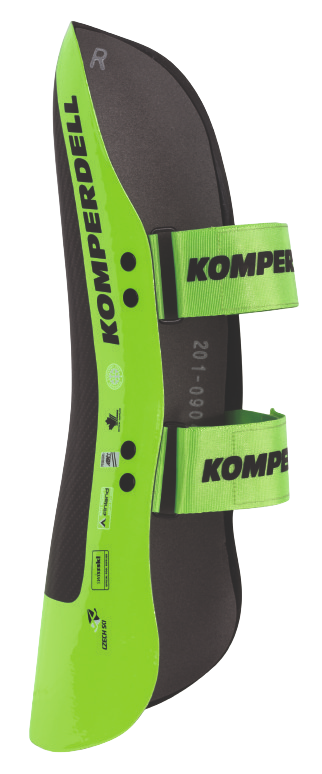 Komperdell shin guards - The lightest shin guard made of carbon - optimal protection for every player. The special shape of the cover ensures that the rod hits the outside and additionally absorbs the impact with a reinforced surface.