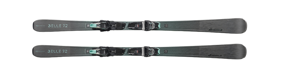 Whether you’re lapping groomers with friends or simply enjoying some solitude, Nordica’s Belle DC 72 keeps you smiling. Especially playful and fun, it’s tailored to the needs of intermediate and advanced skiers. Nordica’s new Double Core technology embeds a shock-absorbing Pulse core between two wood cores to create a calm yet powerful ride that amplifies confidence. A shorter binding plate boosts your ability to flex the ski and initiate turns. And by lowering the position of the rear plate, Nordica’s Natural Stance technology provides a more natural, centered position that maximizes control. Take charge of the trails with Nordica’s Belle DC 72.