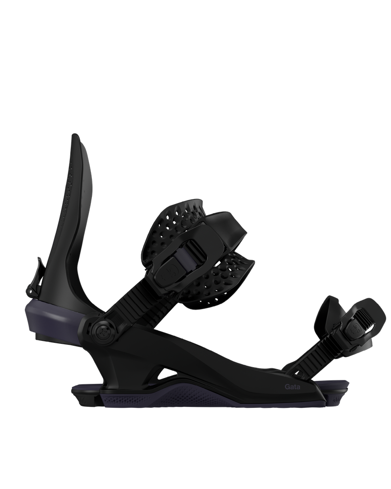 • The Gata binding is designed for women riders seeking outstanding performance. Engineered with the Heelwrap chassis, it delivers unparalleled precision on the mountain. The smaller Quarterback highback, tailored to fit smaller boot sizes better, provides an ideal balance between all-mountain control and freestyle tweakability. Crafted to conquer every challenge, the Gata binding ensures an exceptional riding experience.