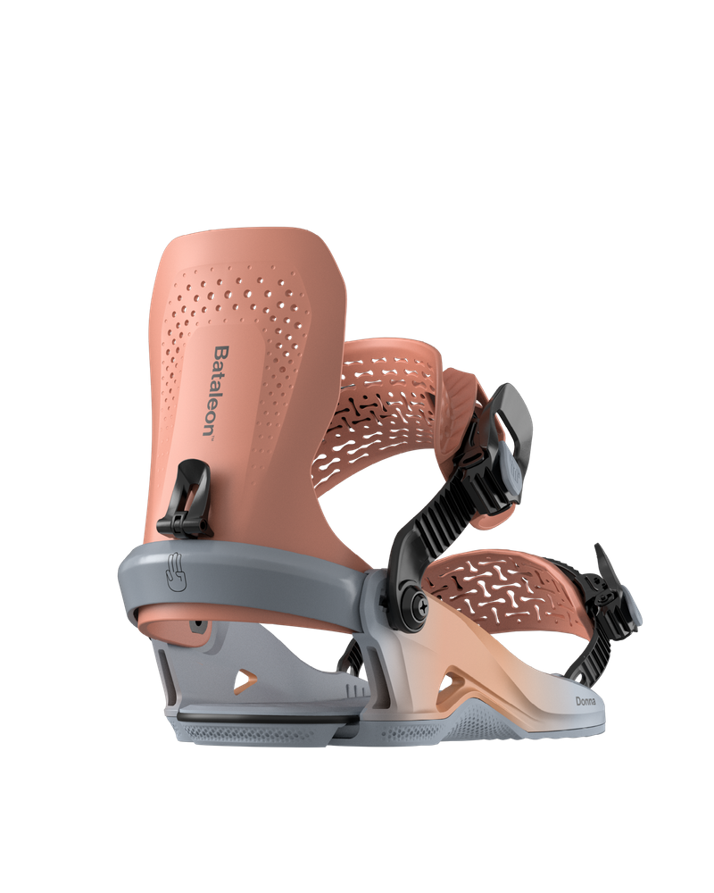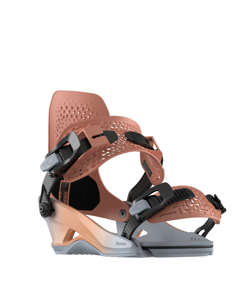 • The Donna HW is your go-to women's all-mountain binding featuring the solid Heelwrap chassis for unmatched stability and precision. The smaller Quarterback highback is tailored to women's boot sizes, ensuring a precise fit while providing a perfect balance of side-to-side flex and toe-to-heel responsiveness. Customize your ride with an adjustable heelcup, three FootPad positions, and highback rotation to maximize heelside performance. Embark on your all-mountain adventures with unparalleled comfort and versatility.